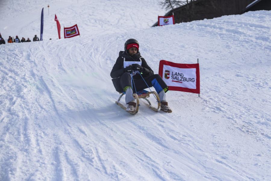 Der Salzburger Chemie-Student Yonatan Tewodros Gerawork aus Äthiopien gewinnt das Afrikarodeln in Kleinarl.