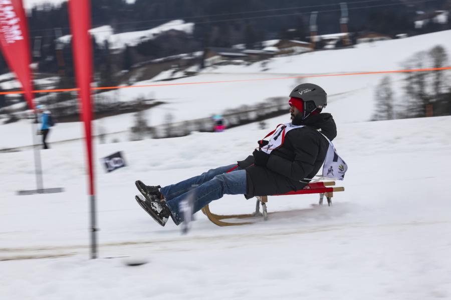 Der Spaß steht bei der coolsten Integrationsveranstaltung der Welt im Vordergrund. Während manche zum ersten Mal auf der Rodel sitzen, können von Wahabu selbst die Profis noch etwas lernen: „Die Rodel geht fast 80 km/h. Wenn man schaltet …“