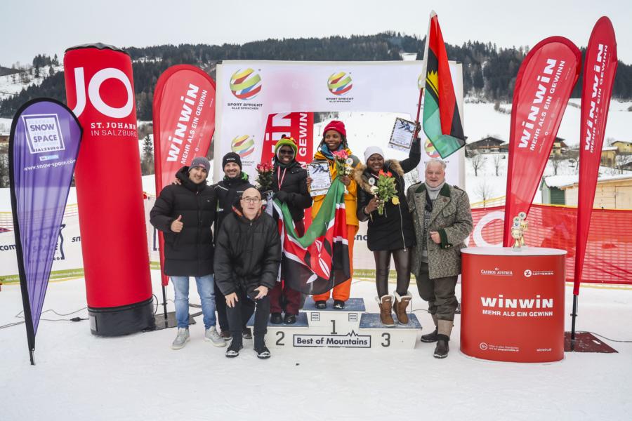 Dancing Star „Soso“ Mugiraneza hat zur Siegerehrung am weißen Parkett von Kleinarl einen standesgemäßen Schneewalzer mit Neos-Integrationslandesrätin Andrea Klambauer gedreht. Klambauer, die als Schlussrodlerin außer Konkurrenz gestartet war, „wäre, wenn wir sie denn gewertet hätten, ohne Details zu verraten, am Stockerl gestanden…“, so „Sport spricht alle Sprachen“-Geschäftsführer Thomas Ebner.